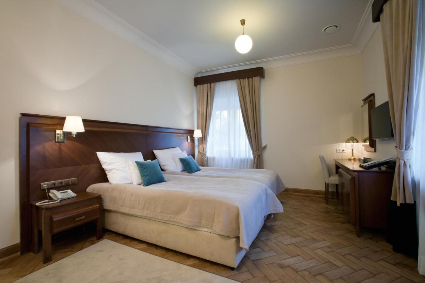 Apartament typu Classic Suite. Guests will have a special experience as the suite offers a sauna. This suite consists of 1 living room, 1 separate bedroom and 1 bathroom with a shower and free toiletries. The suite provides a tea and coffee maker, a wardrobe, a safe deposit box, a sofa, as well as a flat-screen TV with satellite channels. The unit offers 2 beds. Apartament typu Suite - 5 osobowy. Powierzchnia pokoju ok.: 35 mkw. ;