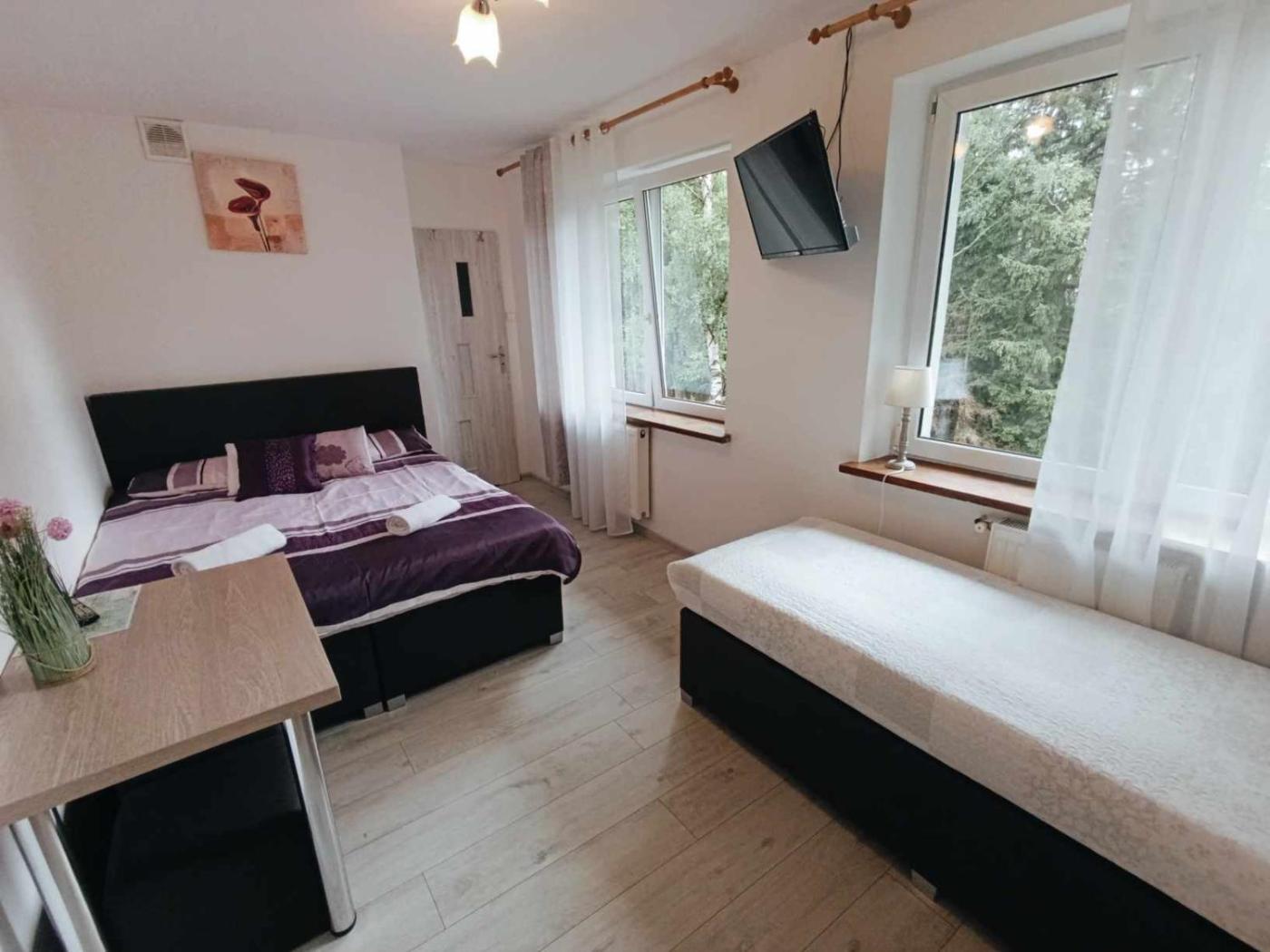 Pokój Trzyosobowy z prywatną łazienką. The triple room provides a wardrobe and heating, as well as a private bathroom featuring a shower. This triple room features a flat-screen TV. The unit offers 2 beds. Pokój Trzyosobowy - 3 osobowy. Powierzchnia pokoju ok.: 12 mkw. ;
