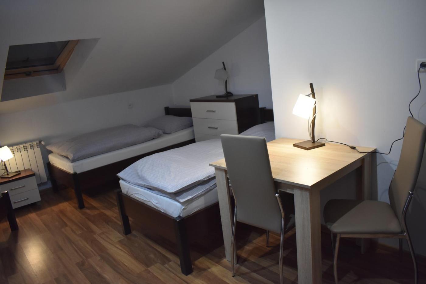 Pokój Czteroosobowy. The quadruple room provides parquet floors, heating, as well as a private bathroom featuring a shower. The quadruple room offers a flat-screen TV, a washing machine, a dining area, a wardrobe as well as garden views. The unit offers 4 beds. Pokój Czteroosobowy - 4 osobowy. Powierzchnia pokoju ok.: 30 mkw. ;