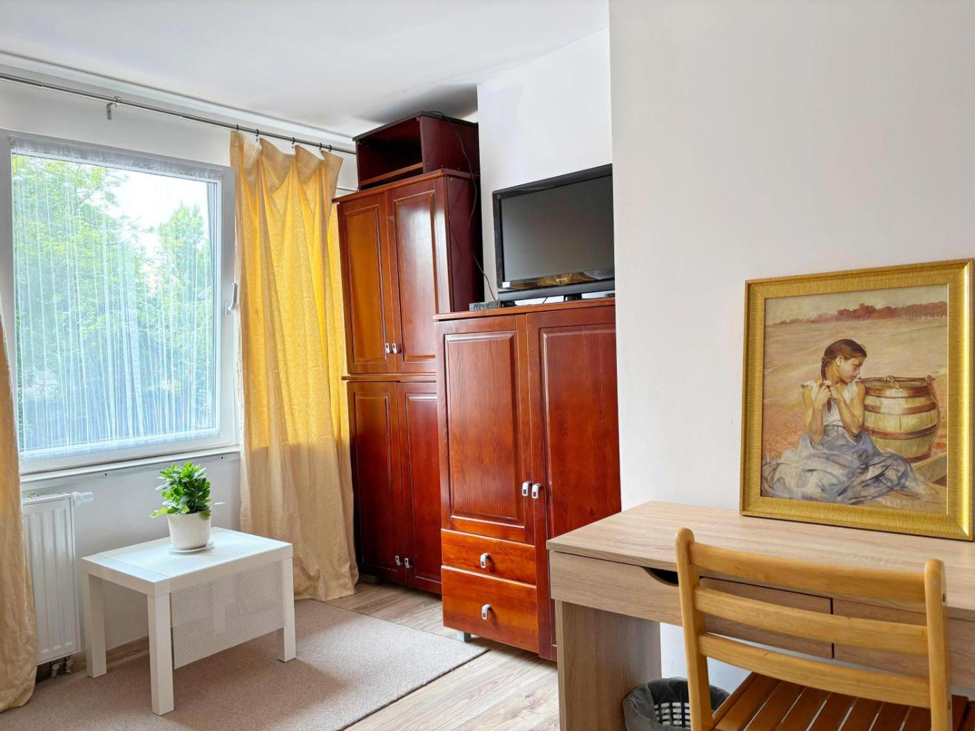 Mały pokój Dwuosobowy. The double room features a shared bathroom, a washing machine, a private entrance, as well as a seating area with a flat-screen TV. Guests can make meals in the fully equipped kitchenette that has a refrigerator, kitchenware and a microwave. The double room provides a TV, soundproof walls, a tea and coffee maker, executive lounge access as well as city views. The unit offers 1 bed. Pokój Dwuosobowy - 2 osobowy. Powierzchnia pokoju ok.: 12 mkw. ;