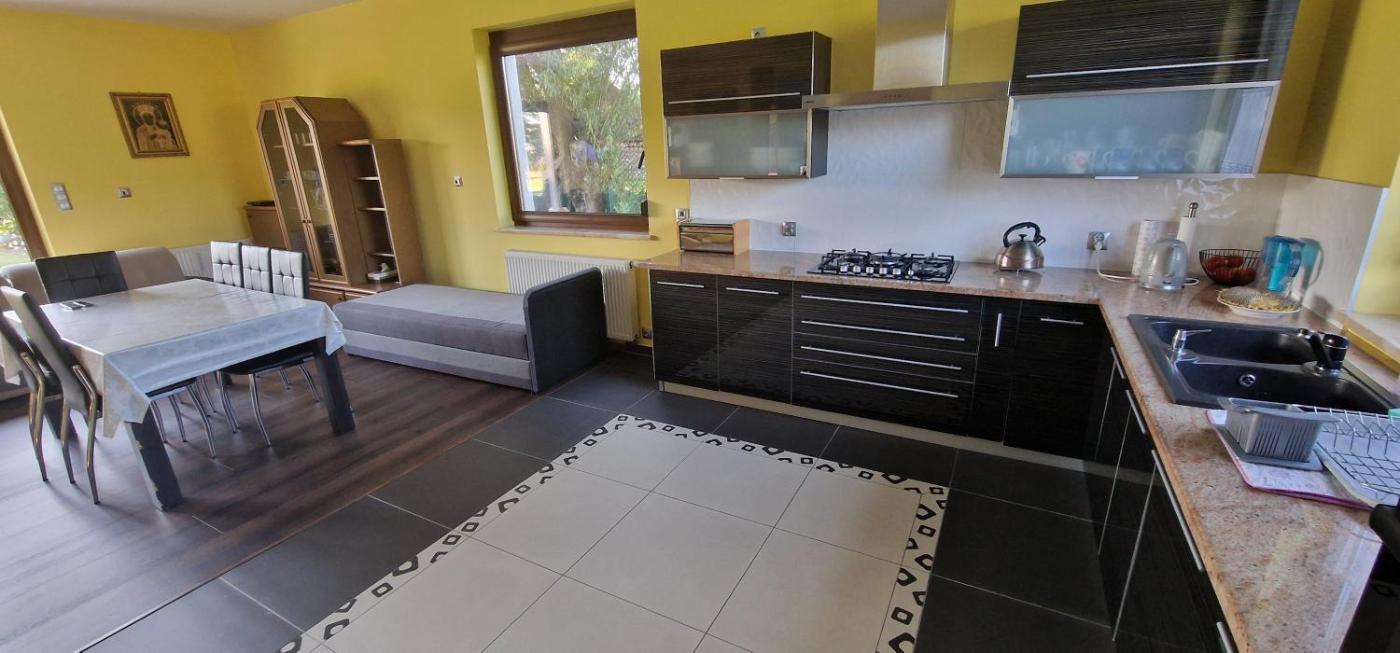 Dom z 1 sypialnią. Boasting a private entrance, this holiday home includes 1 living room, 1 separate bedroom and 1 bathroom with a walk-in shower. In the well-fitted kitchen, guests will find a stovetop, a refrigerator, a dishwasher and kitchenware. Featuring a terrace with garden views, this holiday home also offers a washing machine and a flat-screen TV with cable channels. The unit has 2 beds. Dom wakacyjny - 5 osobowy. Powierzchnia pokoju ok.: 80 mkw.