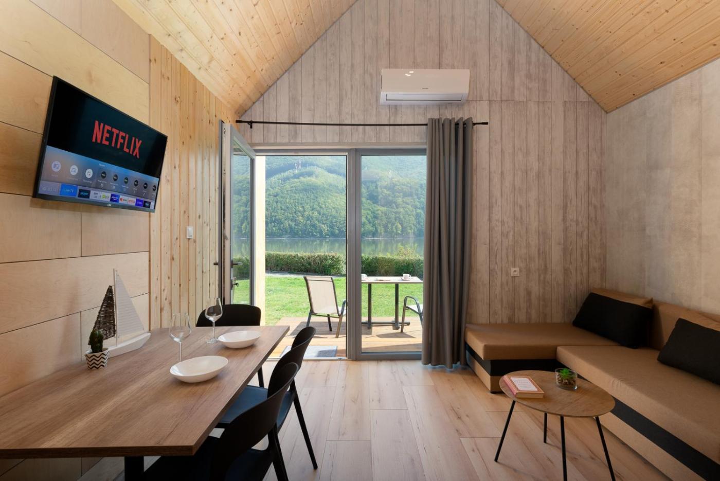 Domek typu Superior. This chalet features a pool with a view. This chalet comprises 1 living room, 1 separate bedroom and 1 bathroom with a shower and free toiletries. Featuring a terrace with lake views, this chalet also provides a private entrance and a flat-screen TV with cable channels. The unit offers 2 beds. Domek - 4 osobowy. Powierzchnia pokoju ok.: 32 mkw. ;