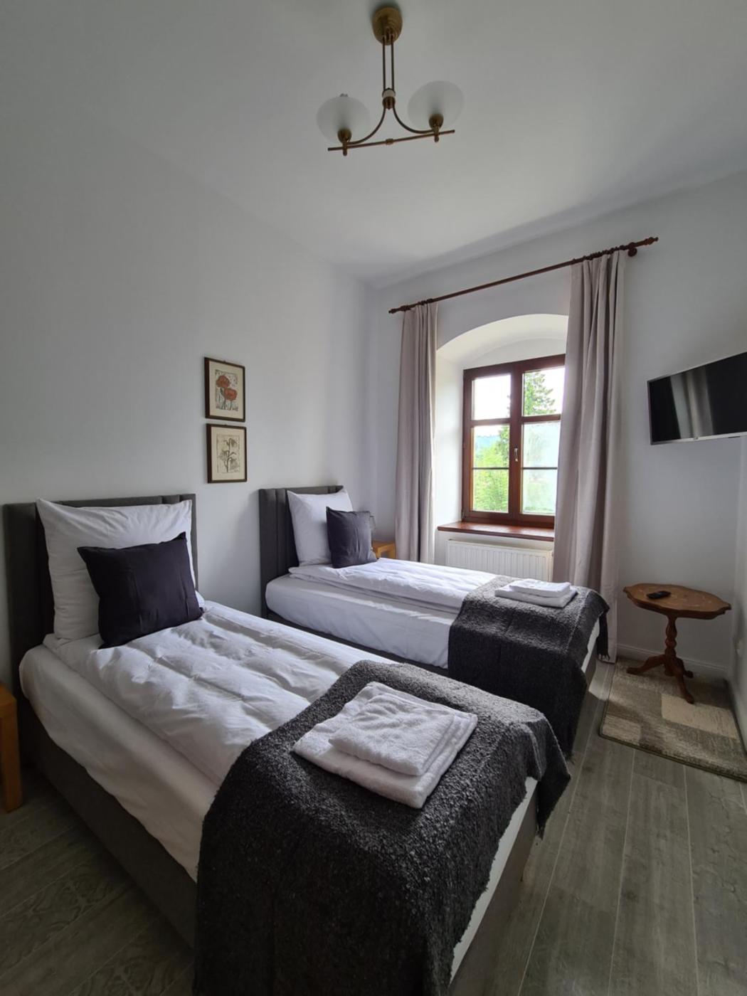 Pokój z łóżkiem typu king-size lub 2 łóżkami pojedynczymi. The twin room includes a private bathroom fitted with a shower. The twin room features a flat-screen TV with cable channels, a wardrobe, parquet floors, heating as well as garden views. The unit has 2 beds. Pokój z 2 łóżkami pojedynczymi - 2 osobowy. Powierzchnia pokoju ok.: 20 mkw. ;