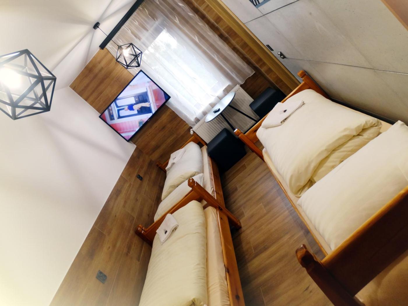 Apartament typu Deluxe. The apartment has 1 bedroom and 1 bathroom with a walk-in shower. The apartment offers an electric kettle, a tiled floor, heating and a flat-screen TV with cable channels. The unit has 3 beds. Apartament - 3 osobowy. Powierzchnia pokoju ok.: 20 mkw.