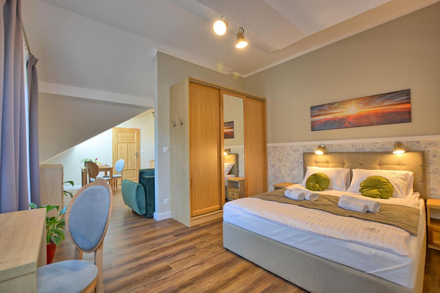 Apartament typu Studio z tarasem. This suite consists of 1 living room, 1 separate bedroom and 1 bathroom with a shower and free toiletries. The suites kitchenette, which features a refrigerator and kitchenware, is available for cooking and storing food. Featuring a terrace, this suite also provides a wardrobe, an electric kettle and a flat-screen TV. The unit offers 2 beds. Apartament typu Suite - 4 osobowy. Powierzchnia pokoju ok.: 30 mkw. ;