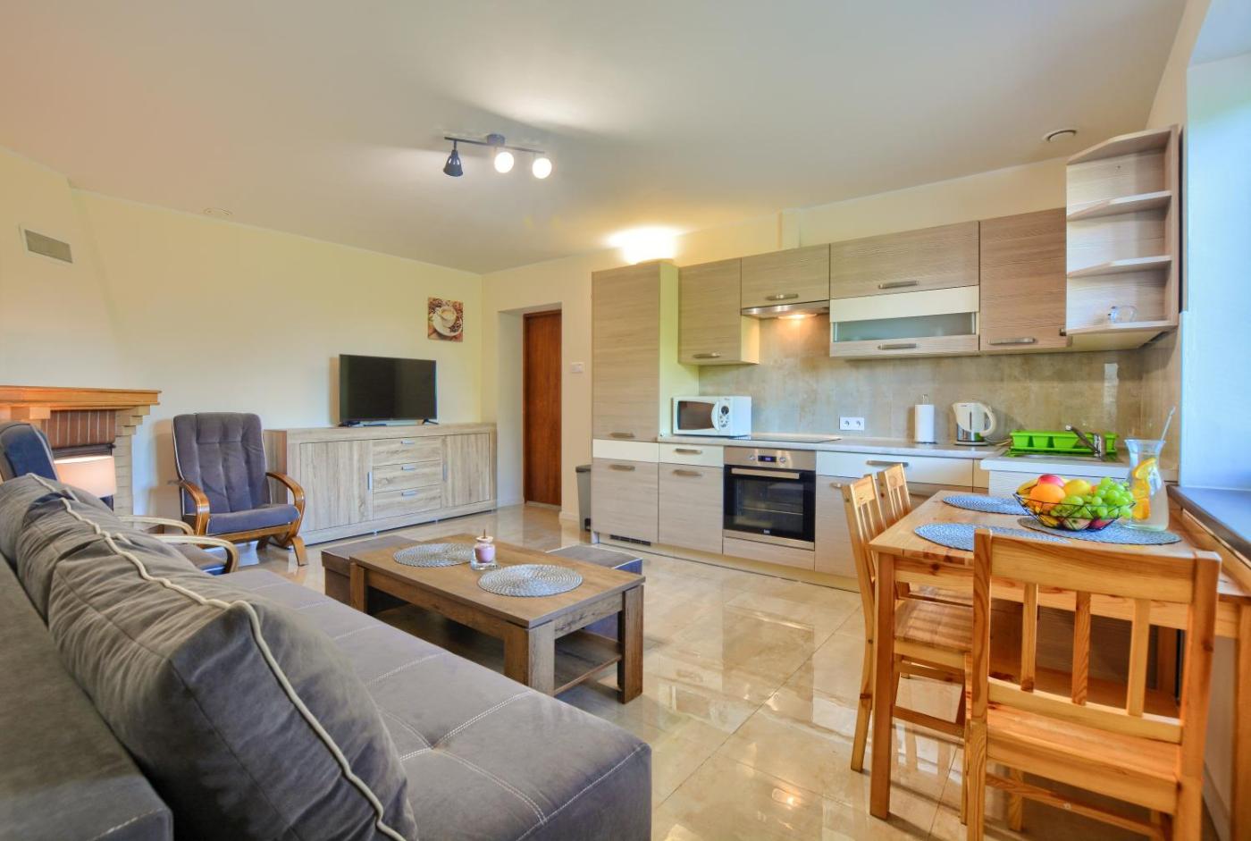 Apartament z 1 sypialnią. Guests will have a special experience as this apartment offers a fireplace. Boasting a private entrance, this air-conditioned apartment includes 1 living room, 1 separate bedroom and 1 bathroom with a shower. The apartments kitchen is available for cooking and storing food. The apartment has tiled floors, a seating area with a flat-screen TV, a washing machine, a barbecue, as well as a sofa. The unit has 4 beds. Apartament - 5 osobowy.