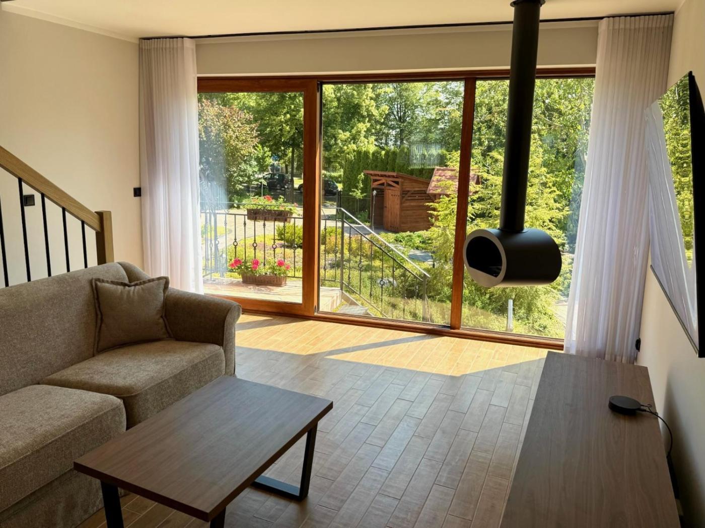 Apartament Rodzinny z 1 sypialnią. The fireplace is a top feature of this apartment. This spacious apartment comes with 1 living room, 1 separate bedroom and 1 bathroom with a shower and free toiletries. Guests will find a stovetop, a refrigerator, a dishwasher and an oven in the fully equipped kitchen. The apartment also includes a barbecue. The air-conditioned apartment features a flat-screen TV, a washing machine, a private entrance, a tea and coffee maker as well as garden views. The unit has 2 beds. Apartament - 4 osobowy. Powierzchnia pokoju ok.: 76 mkw.