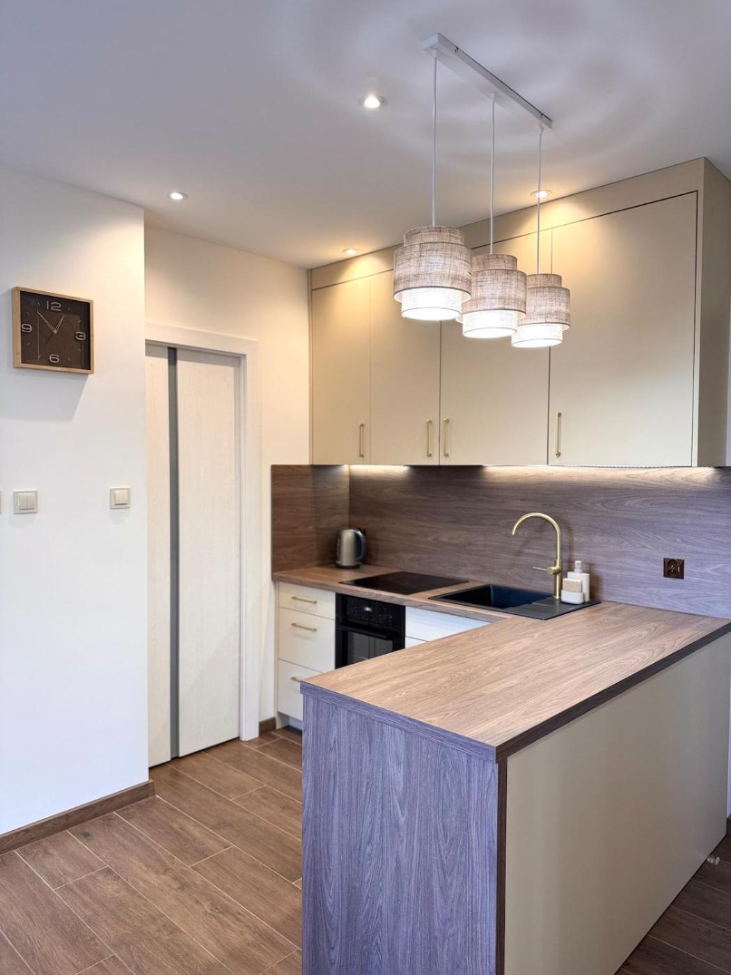 Apartament z 1 sypialnią. This apartment is comprised of 1 living room, 1 separate bedroom and 1 bathroom with a shower and a hairdryer. The well-fitted kitchen features a stovetop, a refrigerator, a dishwasher and kitchenware. The apartment offers a coffee machine, a wardrobe, a tiled floor, a flat-screen TV with cable channels, as well as mountain views. The unit offers 2 beds. Apartament - 4 osobowy. Powierzchnia pokoju ok.: 30 mkw.