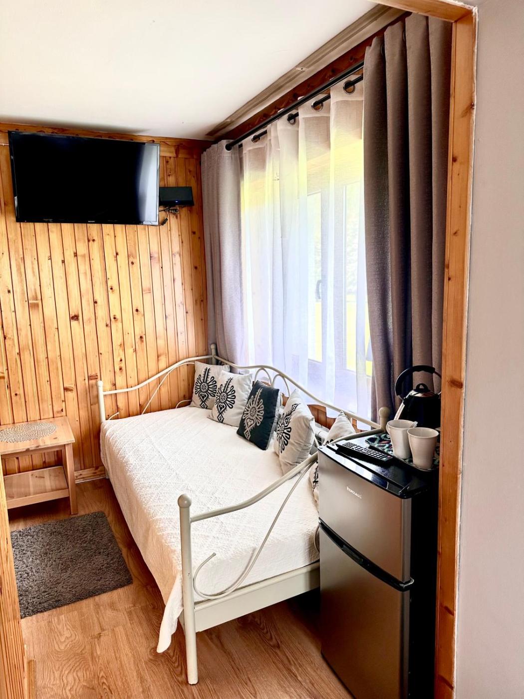 Pokój rodzinny. The family room features a sofa and parquet floors, as well as a private bathroom featuring a shower. The family rooms kitchenette, which features a refrigerator and kitchenware, is available for cooking and storing food. The family room provides a dining area, a wardrobe, an electric kettle, a flat-screen TV, as well as mountain views. The unit offers 2 beds. Rodzinny - 2 osobowy. Powierzchnia pokoju ok.: 25 mkw. ;